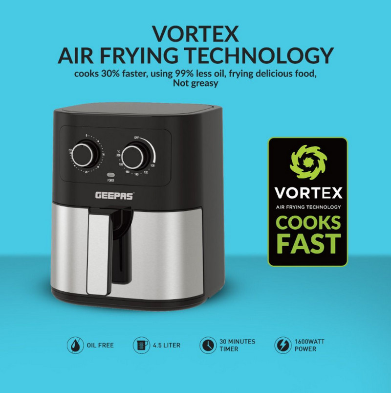3) فن آوری VORTEX: سرخ کن هوا از فناوری سرخ کردن هوای VORTEX استفاده می کند، که غذا را 30٪ سریعتر طبخ می کند در حالی که 99٪ روغن کمتری مصرف می کند و در نتیجه نتایج خوشمزه و بدون چربی دارد.