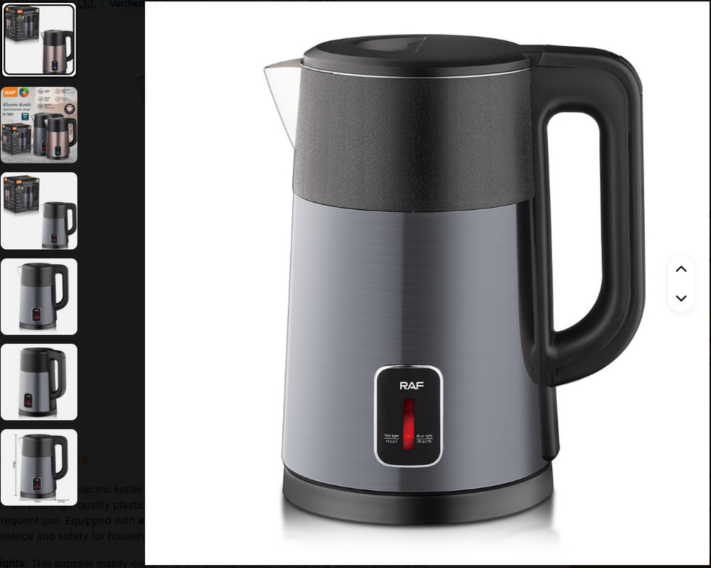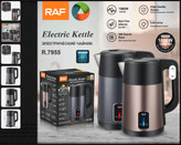 کتری برقی RAF مدل R‑7955 از نسل جدید محصولات کاربردی این برند معتبر است که با ترکیب قدرت، حجم زیاد و طراحی جذاب، تجربهای راحت و هوشمند از جوشاندن آب را فراهم میکند. با توان ۱۸۰۰ وات، المنت گرمایشی مخفی (Concealed Heating Element) و ظرفیت ۲٫۵ لیتر، این کتری در کوتاهترین زمان آب را به نقطهٔ جوش میرساند و برای استفاده روزمره در آشپزخانه، دفتر کار و حتی محیطهای اقامتی کاملاً ایدهآل است.