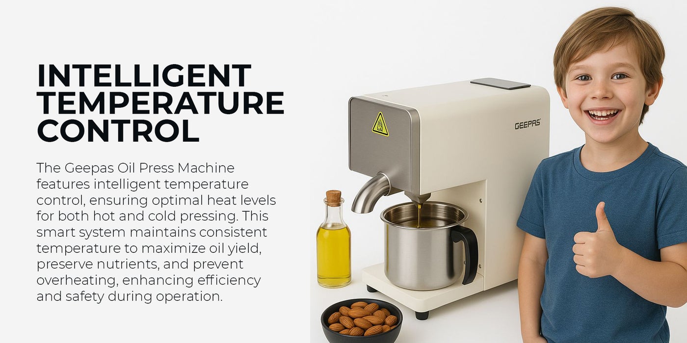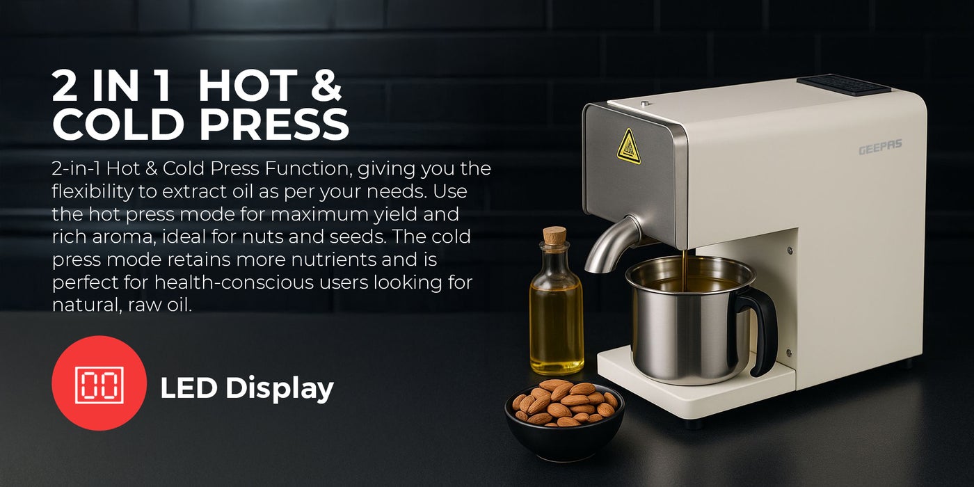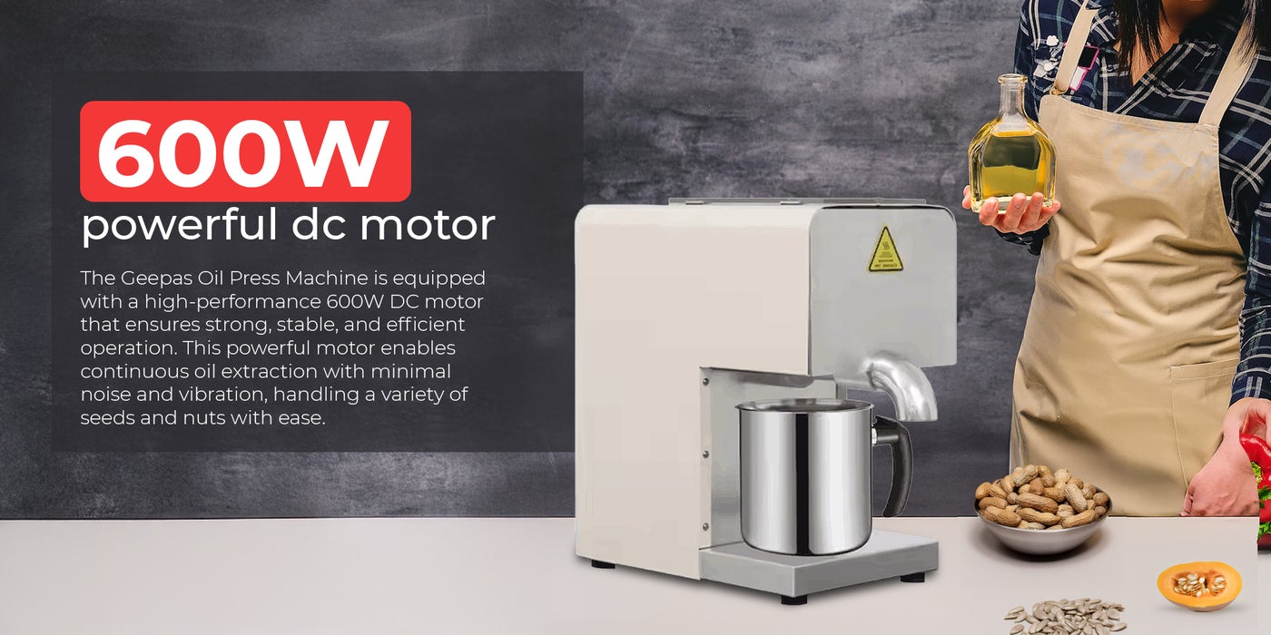 معرفی دستگاه روغنگیری خانگی Geepas GOP63091 - دستگاهی با کارایی بالا و کاربرپسند که برای کمک به شما در لذت بردن از مزایای استخراج روغن تازه و طبیعی در راحتی خانهتان طراحی شده است. این دستگاه روغنگیری پیشرفته، طراحی هوشمند، ساختار مستحکم و عملکرد قدرتمند را با هم ترکیب میکند و آن را به همراهی ایدهآل برای افراد و خانوادههای آگاه به سلامت تبدیل میکند که به دنبال خلوص و کیفیت در روغن پخت و پز روزانه خود هستند.
