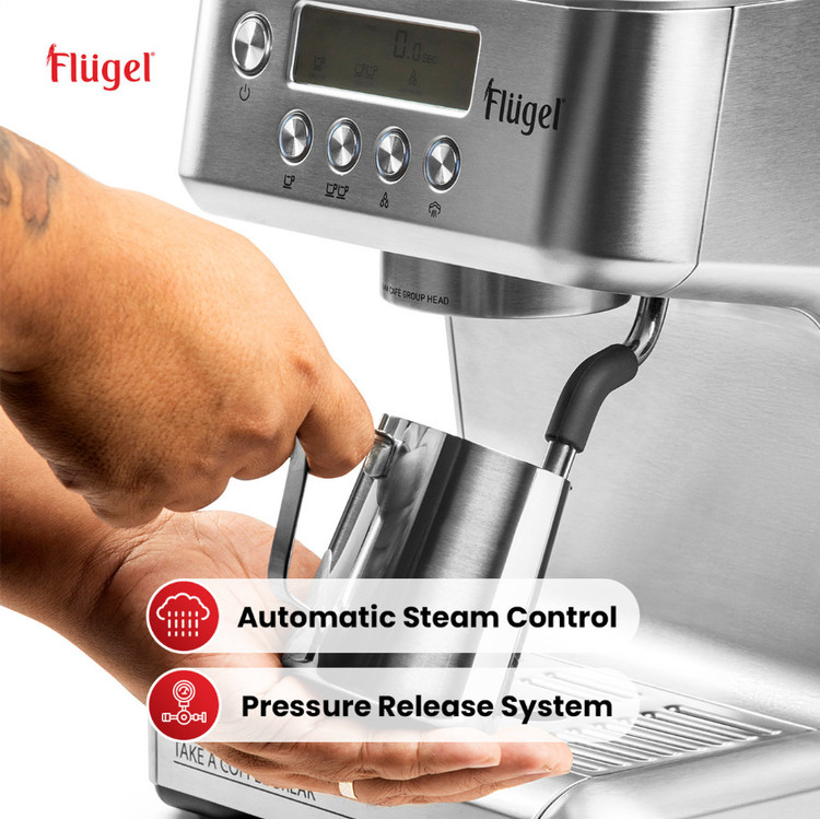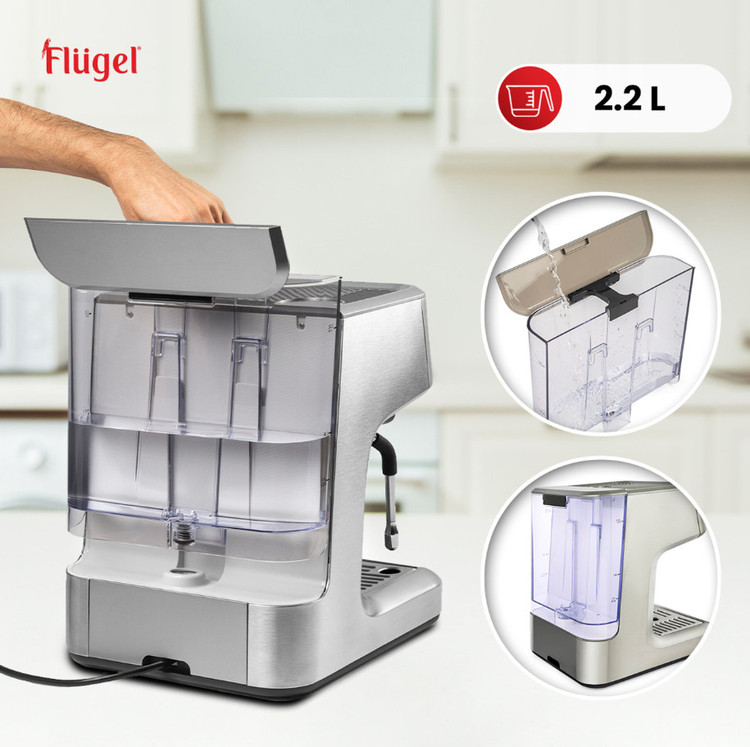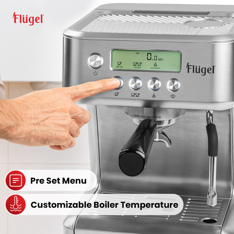 معرفی دستگاه اسپرسوساز دیجیتال فلوگل، دستگاهی پیشرفته که برای ارتقای تجربه قهوه شما طراحی شده است. این دستگاه با موتور قدرتمند ۱۴۰۰ واتی و مجموعهای از ویژگیهای حرفهای، اسپرسویی با کیفیت باریستا را تنها با لمس یک دکمه به خانه شما میآورد.