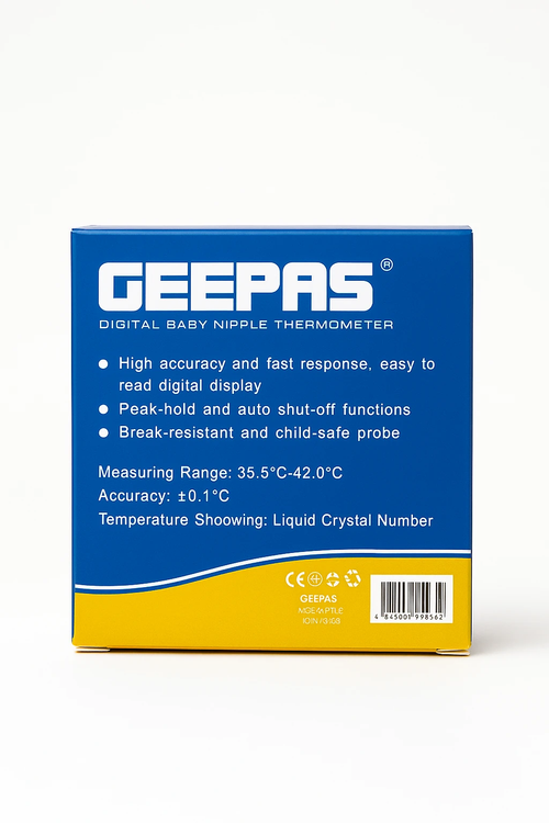 با پستانک دماسنج GEEPAS، دمای بدن نوزادتان را بدون هیچ زحمتی اندازه بگیرید. طراحی کودکپسند و ارگونومیک آن باعث میشود نوزاد کاملاً راحت باشد و اندازهگیری بدون گریه و استرس انجام شود.