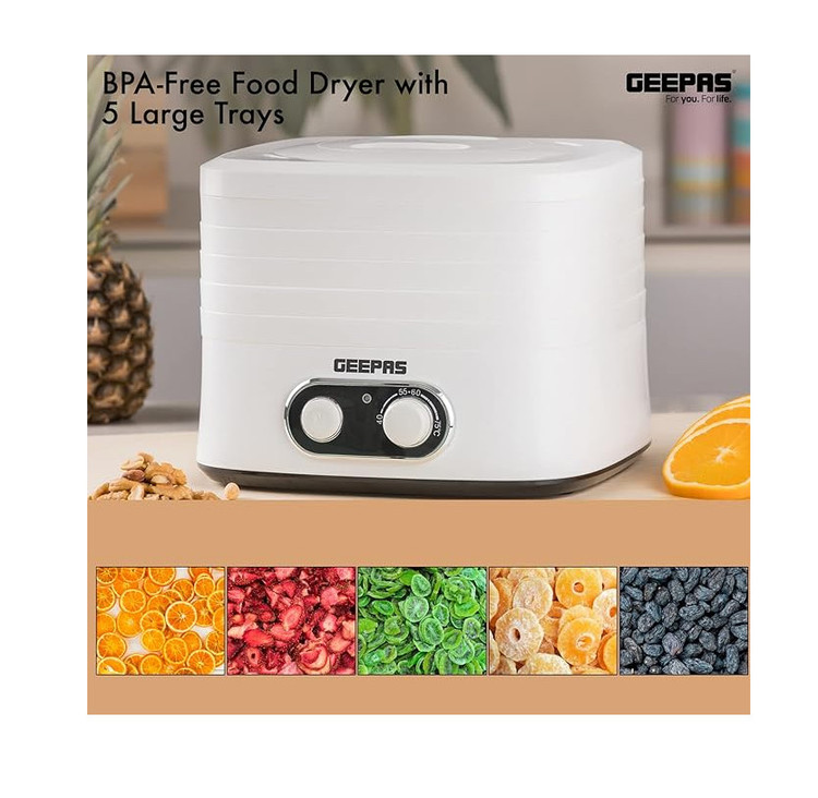 با خشککن غذا Geepas GFD240 راهی طبیعی و سالم برای حفظ مواد غذایی و تهیه میانوعدههای خانگی خوشمزه پیدا کنید!