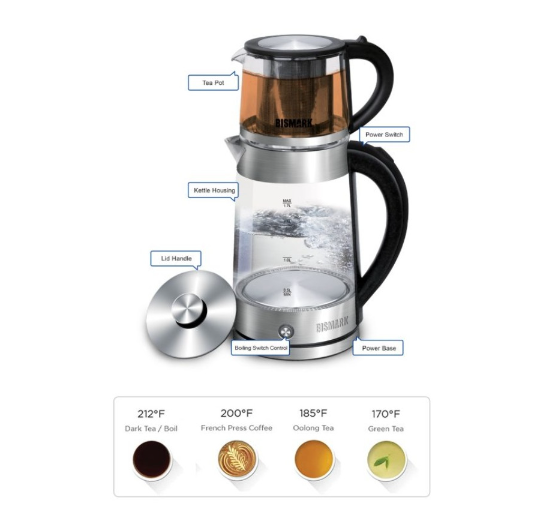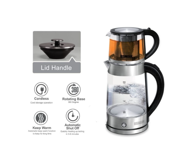 چایساز بیسمارک مدل BM2282 با توان 2200 وات و ظرفیت 1.7 لیتر، یک انتخاب عالی برای استفاده روزانه است. بدنه شیشهای پیرکس آن باعث زیبایی و مقاومت بیشتر در برابر حرارت میشود. این دستگاه دارای فیلتر تفاله و نشانگر جوش آمدن است که استفاده راحت را برای شما فراهم میکند. همچنین، سیستم ایمنی پیشرفته آن شامل خاموش شدن خودکار و قابلیت حفظ دما است که از خطرات احتمالی جلوگیری میکند. قوری شیشهای با ظرفیت 1.5 لیتر بر روی کتری قرار میگیرد و قابلیت چرخش 360 درجه برای استفاده آسانتر فراهم شده است.