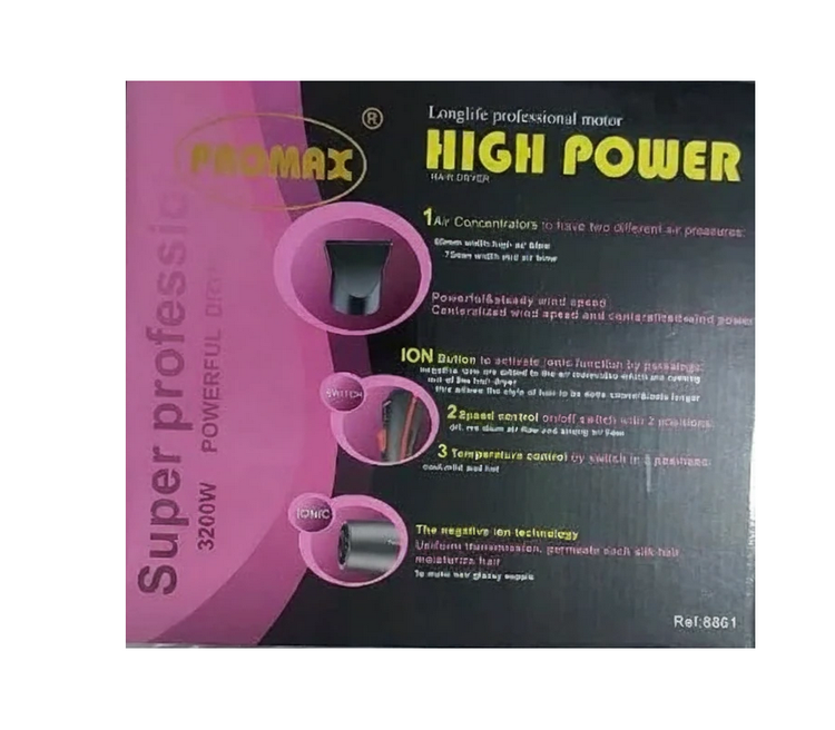 سشوار PROMAX 9900W SUPER PROFESSIONAL، انتخابی قدرتمند برای سالنداران و استفاده خانگی حرفهای.