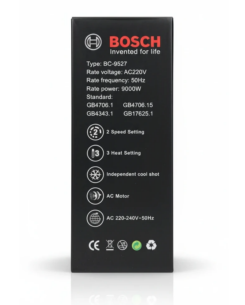 سشوار BOSCH BC‑9527 یکی از پرفروشترین مدلهای حرفهای بازار است؛ مناسب سالنها و مصرف خانگی سطح بالا. این مدل با موتور قدرتمند AC، توان 9000 وات و قابلیتهای پیشرفته طراحی شده تا خشک کردن و حالتدهی مو را سریع، مؤثر و کاملاً ایمن انجام دهد.