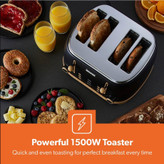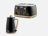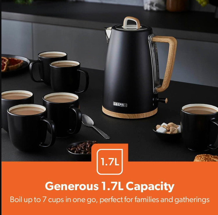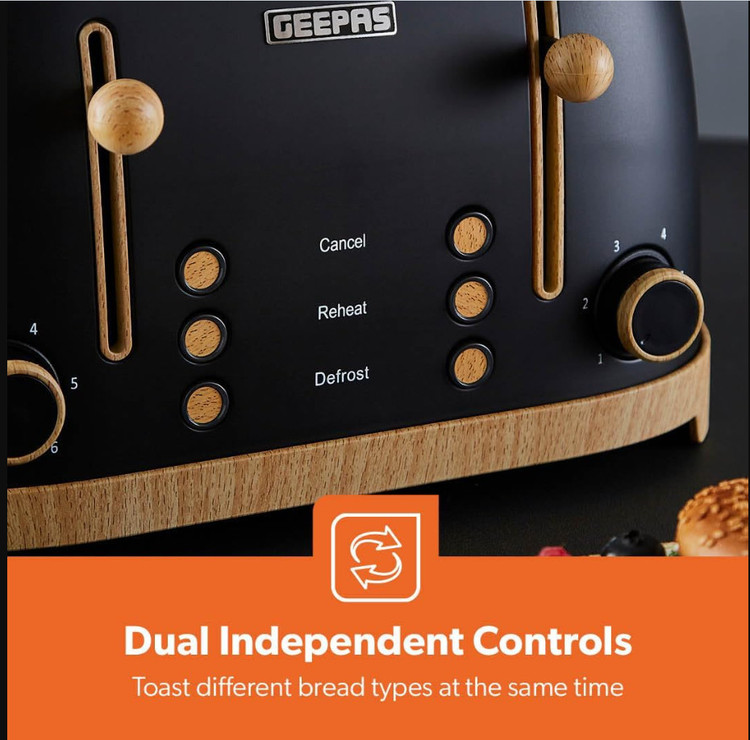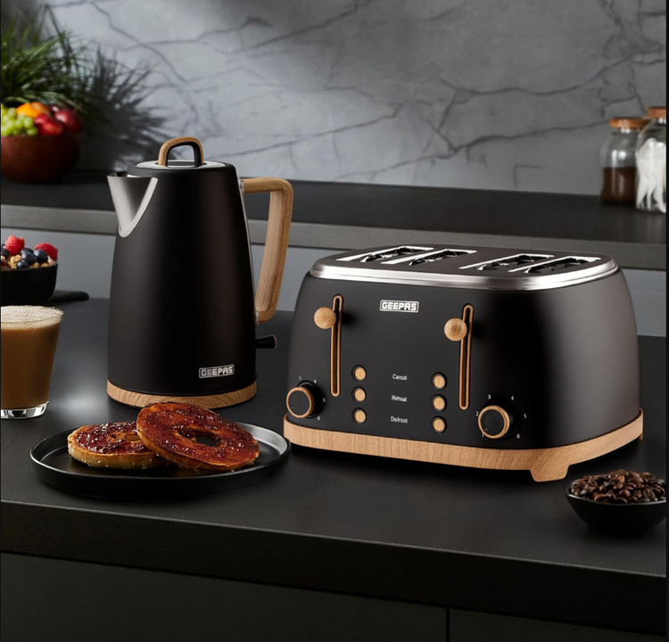توستر ۴ خانه + کتری برقی ۱.۷ لیتری | طراحی اسکاندیناویایی | مشکی مات با جزئیات چوبی