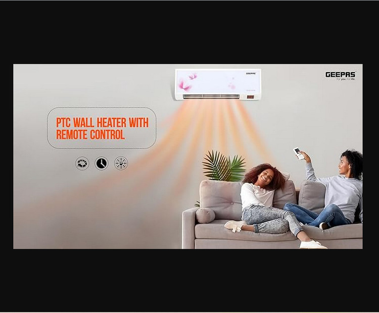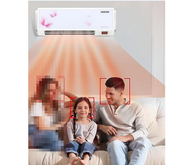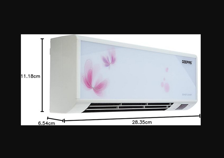 بخاری دیواری Geepas 2500 وات - عمودی یا تخت، ترموستات قابل تنظیم با 2 تنظیم حرارتی 1500-2500 وات و محافظت در برابر گرمای بیش از حد - بخاری سبک وزن با گزینه خنک کننده -