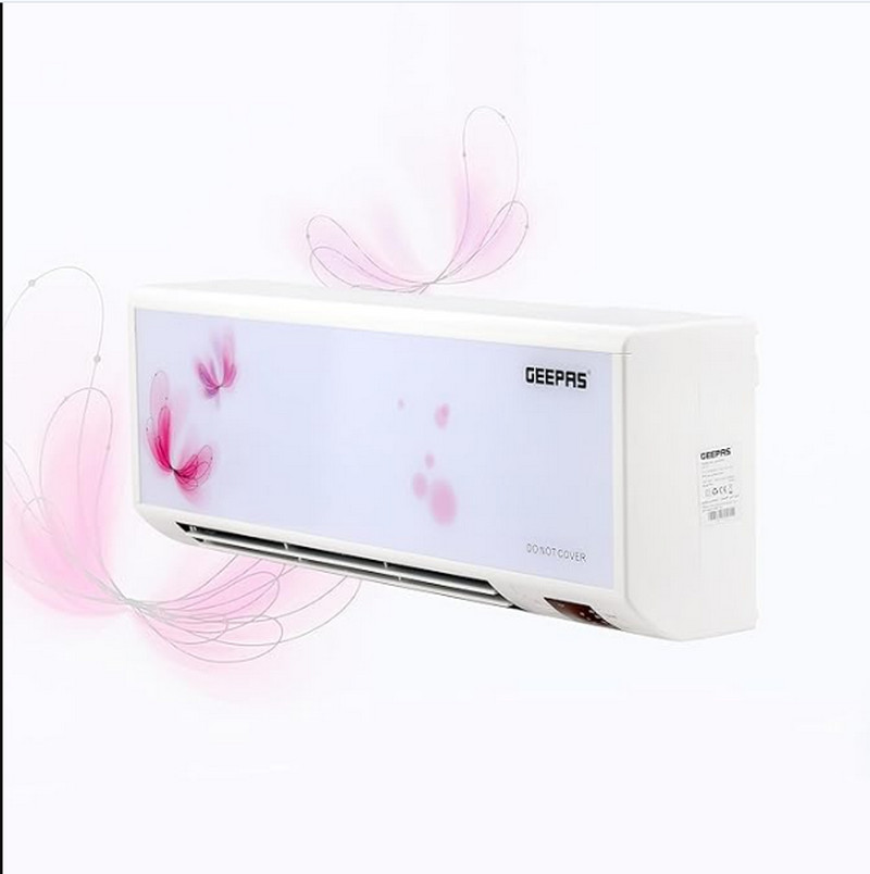 بخاری دیواری Geepas 2500 وات - عمودی یا تخت، ترموستات قابل تنظیم با 2 تنظیم حرارتی 1500-2500 وات و محافظت در برابر گرمای بیش از حد - بخاری سبک وزن با گزینه خنک کننده -