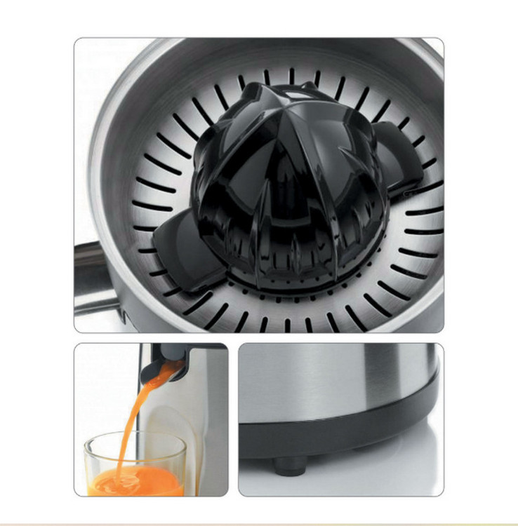 این دستگاه با بدنهای از استیل ضد زنگ ساخته شده که علاوه بر زیبایی، مقاومت بالایی در برابر خوردگی و زنگزدگی دارد. جنس استیل این محصول آن را برای استفاده طولانی مدت مناسب میسازد. همچنین دو سایز مخروطی در این دستگاه، امکان استفاده از آن را برای انواع مختلف مرکبات فراهم میکند. سیستم ضد چکه که در این مدل به کار رفته، از کثیف شدن محیط اطراف دستگاه جلوگیری میکند.