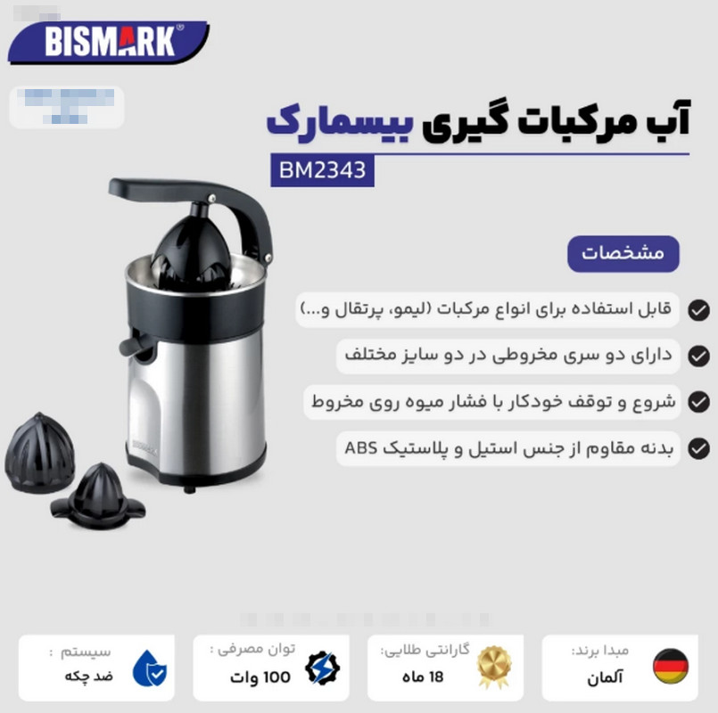 آب مرکبات گیری بیسمارک مدل BM2343 با طراحی شیک، عملکرد عالی، و ویژگیهای منحصر به فرد، یک انتخاب مناسب برای هر خانه یا محیط کاری است. این محصول با داشتن قابلیتهای ویژه مانند سیستم ضد چکه، شستشوی آسان قطعات، و اهرم فشاری، تجربهای راحت از استفاده روزمره به شما میدهد.
