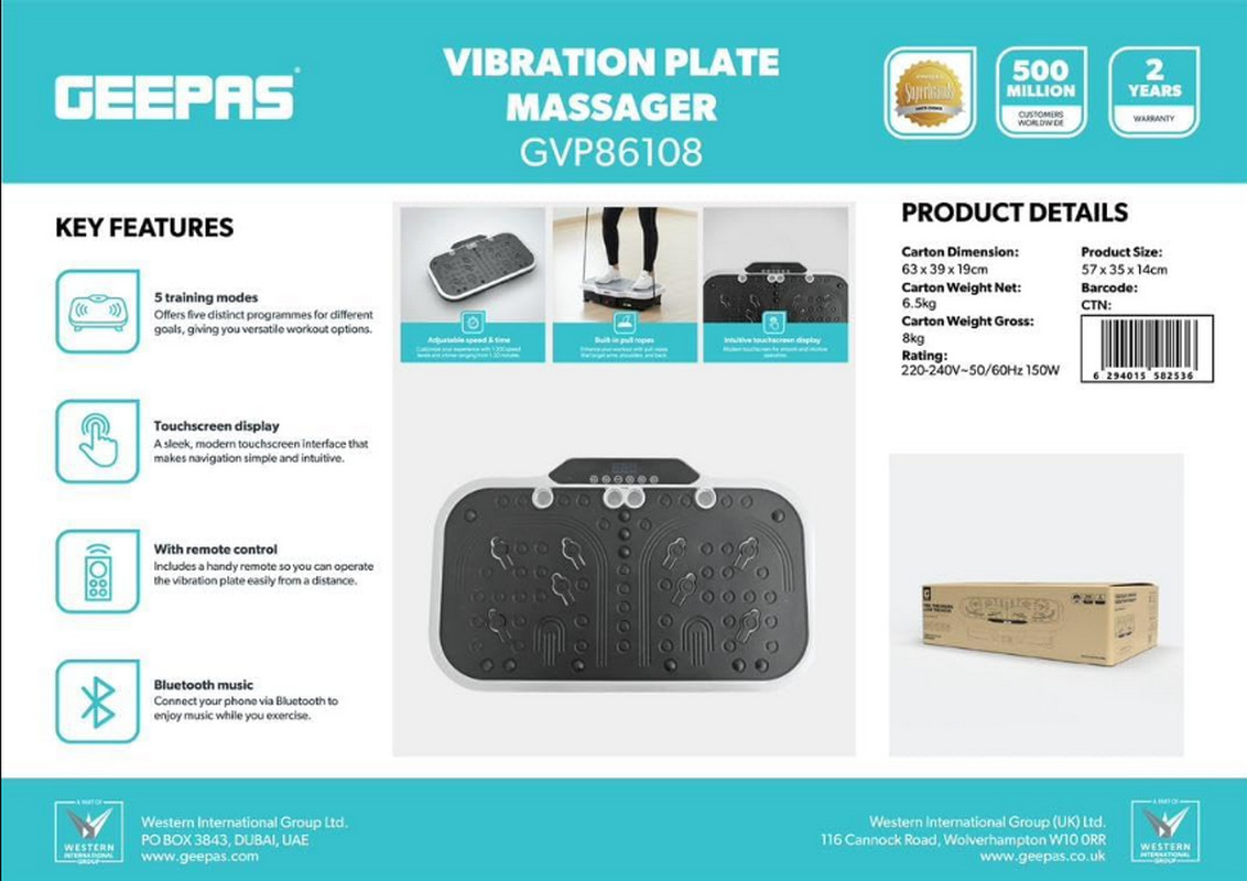 اگر به دنبال یک راه ساده، مؤثر و مدرن برای تناسب اندام، ریلکسیشن عضلات و افزایش گردش خون در خانه هستید، پلتفرم لرزشی جیپاس مدل GVP86108 انتخابی ایدهآل برای شماست. این دستگاه با فناوری لرزش پیشرفته، بدون نیاز به تمرینهای سنگین، عضلات کل بدن را فعال کرده و به چربیسوزی، تقویت عضلات و کاهش خستگی کمک میکند.