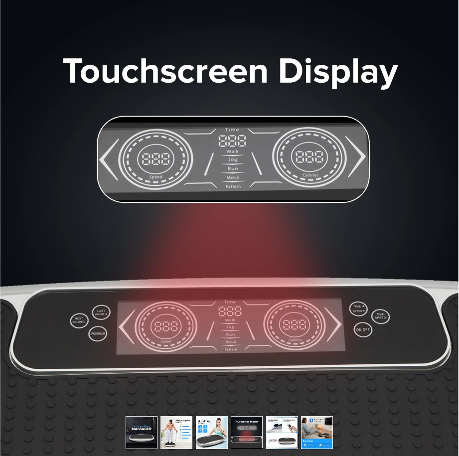 پنل لمسی مدرن با کاربری آسان برای انتخاب برنامهها، تنظیم شدت لرزش و کنترل زمان تمرین.
