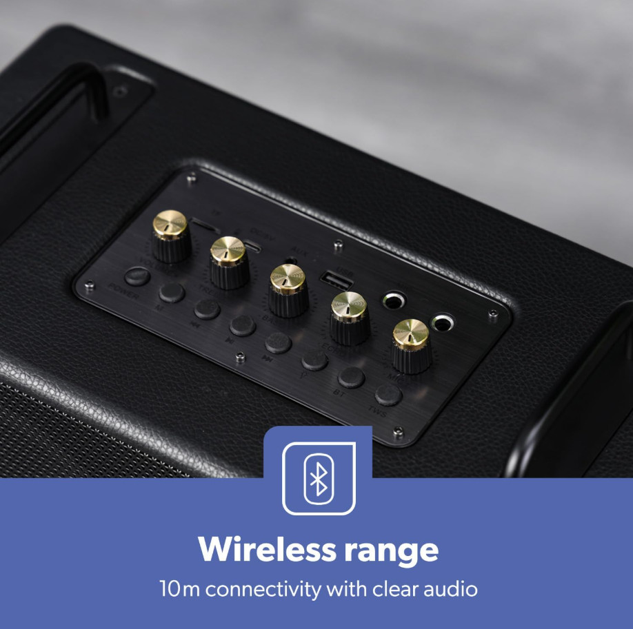 Enjoy powerful 70W sound with deep bass and clear vocals. Perfect for karaoke, parties, and outdoor fun with seamless Bluetooth connectivity.