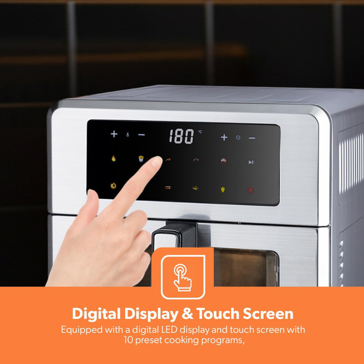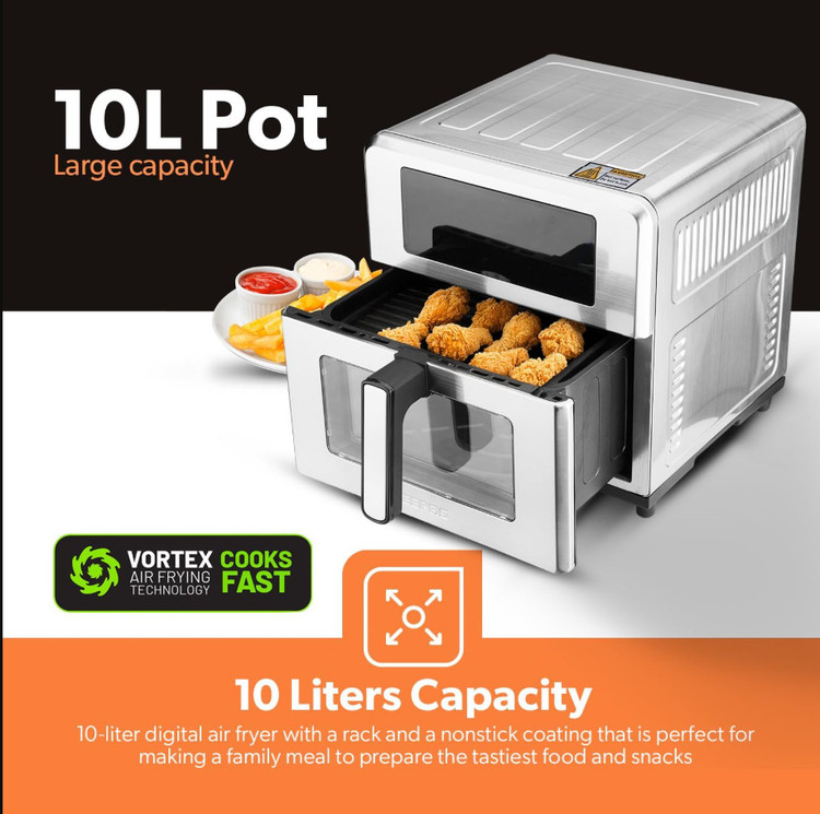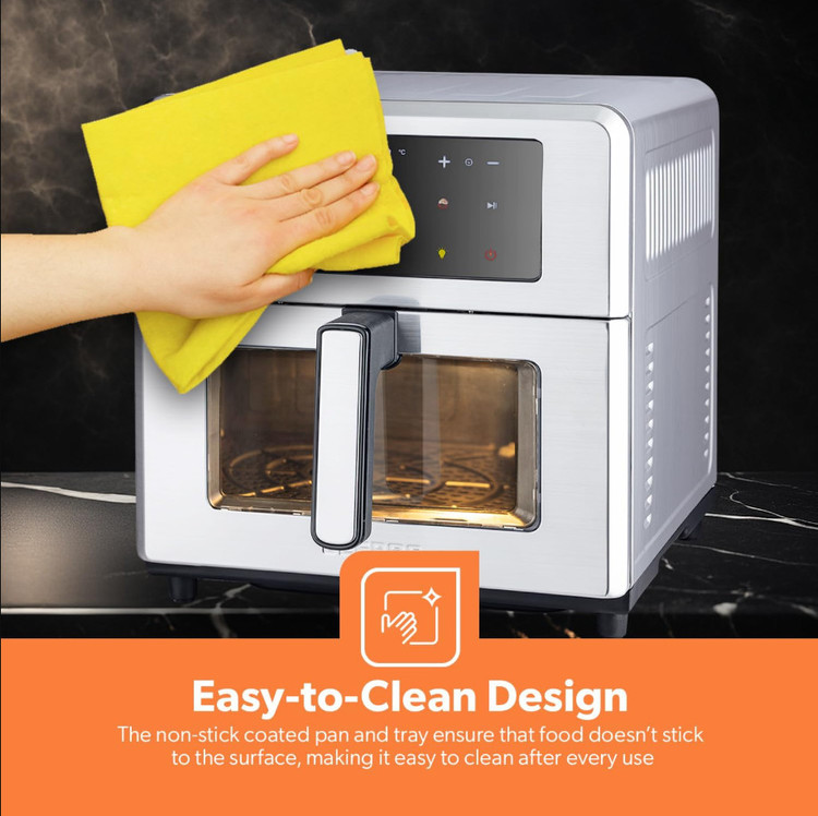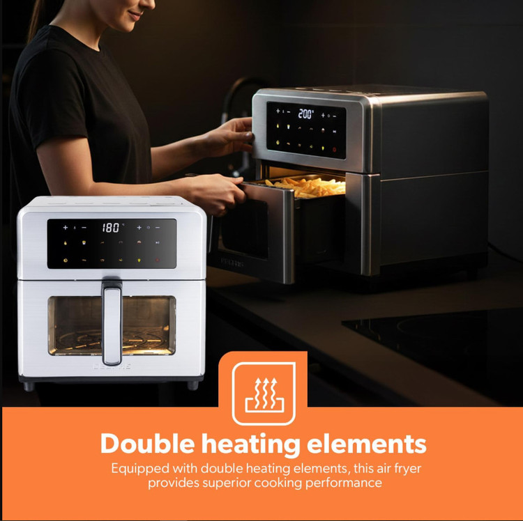 این دستگاه با بهرهگیری از فناوری Vortex Rapid Air و سیستم گرمایش دوگانه (بالا و پایین)، غذاها را تا ۵۰٪ سریعتر و با ۷۰٪ مصرف انرژی کمتر نسبت به فرهای معمولی آماده میکند؛ آن هم با حداقل یا بدون روغن.