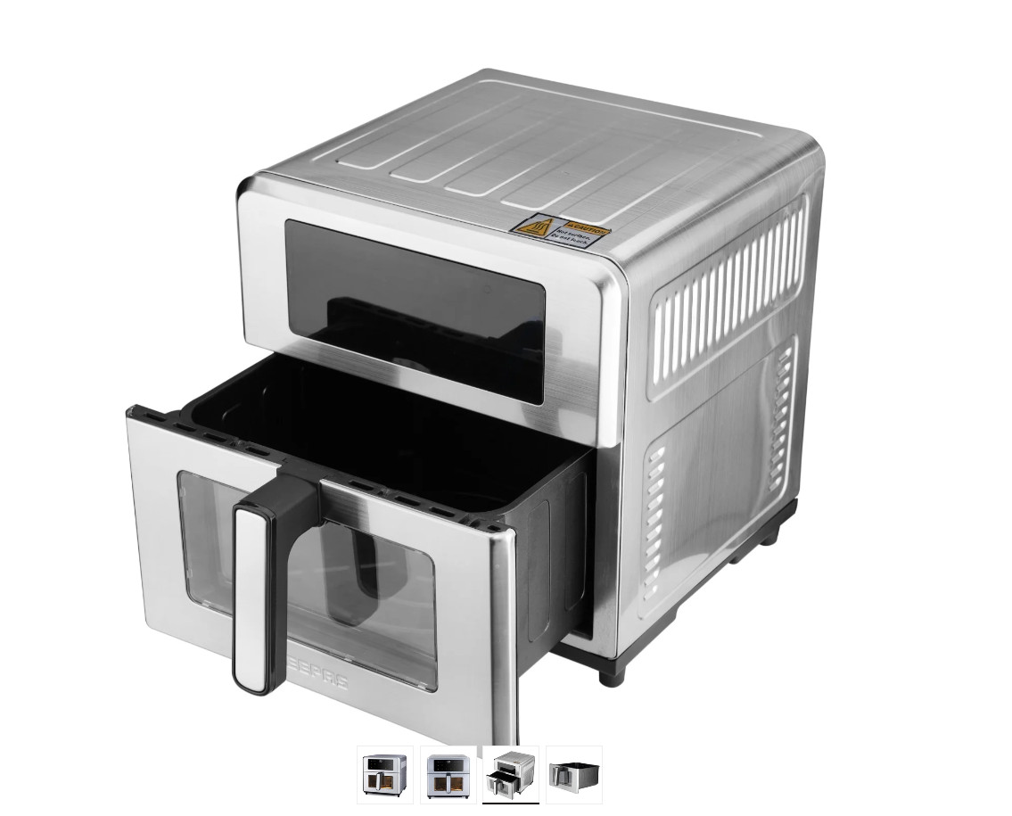 این دستگاه با بهرهگیری از فناوری Vortex Rapid Air و سیستم گرمایش دوگانه (بالا و پایین)، غذاها را تا ۵۰٪ سریعتر و با ۷۰٪ مصرف انرژی کمتر نسبت به فرهای معمولی آماده میکند؛ آن هم با حداقل یا بدون روغن.
