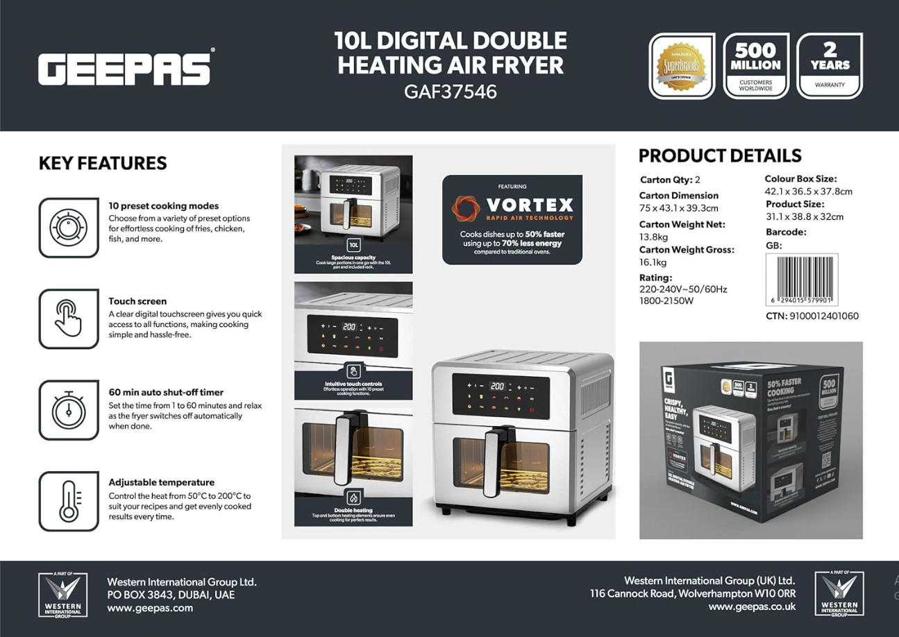 Geepas | ظرفیت 10 لیتر | سیستم دو المنت حرارتی