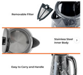 کتری برقی Geepas یک کتری شیک با طراحی ممتاز و ترکیبی از حس بسیار شیک و غنی است و به هر طرح آشپزخانه ای سبک می بخشد. ظرفیت بزرگ 1.7 لیتری باعث میشود شما مقدار زیادی آب گرم داشته باشید. این یک کتری 2200 واتی است که حتی زمانی که کاملا پر باشد به سرعت و بی سر و صدا می جوشد. اگر به نوشیدنی گرم سریع نیاز دارید یا فقط یک فنجان درست می کنید، ایده آل است. عالی برای تعطیلات و سفرهای دور، کاروانها، موتورخانهها، اقامتگاههای دانشجویی، هتلها، اتاقهای مهمان یا صرفاً به عنوان پشتیبان آشپزخانه.