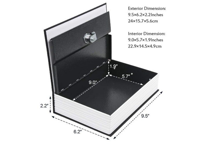 قفل آسان و قفل کلید باز: گاوصندوق از مواد فلزی قوی ساخته شده است و با دو کلید همراه است. این گاوصندوق کتاب انحراف مکانی عالی برای مخفی شدن فراهم می کند و امکان دسترسی آسان به اشیاء با ارزش خود را در صورت نیاز فراهم می کند.
