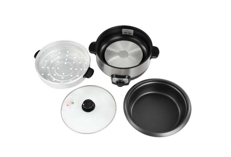 دارای بدنه مدرن استیل ضد زنگ و قابلمه داخلی آلومینیومی قابل جابجایی با پوشش نچسب.