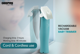 موبر کودک و نوزاد ماشین شارژی Geepas یک تیغه سرامیکی با دندانههای R شکل برای کوتاه کردن موهای کودکان بدون کشیدن مو یا خاراندن روی پوست استفاده میکند.