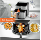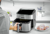 1) ظرفیت بزرگ: سرخ کن دیجیتال 7.5 لیتری با یک سبد داخلی 5.5 لیتری برای تهیه خوشمزه ترین غذاها و تنقلات بدون روغن و تا 80 درصد چربی کمتر. برای پخت غذای کاملا پخته، سالم و کم چرب بدون روغن برای کل خانواده ایده آل است