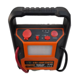 دستگاه ذخیره برق سیار 5 در 1 جامپ استارتر، کمپرسور، چراغ کار LED و ایستگاه شارژ USB در یک واحد. علاوه بر عملکرد شروع شارژ باطری برای ماشین. موتور سیکلت، چهارچرخ، قایق و غیره می توان از طریق سوکت 12 ولت و دستگاه پورت USB مانند: جعبه خنک کننده، لپ تاپ، تلفن همراه و غیره شارژ و کار کرد. کمپرسور تعبیه شده با 3 آداپتور سوپاپ،برای لاستیک های خودرو، موتور سیکلت و دوچرخه و همچنین توپ ها را پر می کند. چراغ کار LED یکپارچه محیط کار را در نور ضعیف روشن می کند و همچنین می تواند به عنوان چراغ چشمک زن استفاده شود.دستگاه را می توان از طریق کابل شارژ موجود در برق اصلی یا برق 12 ولتی شارژ کرد: ویژگی ها: - استارت پرش با محافظ قطبیت معکوس - کمپرسور با 3 آداپتور سوپاپ - چراغ کار LED، چراغ چشمک زن و چراغ هشدار - USB ایستگاه شارژ - شارژ ایستگاه برق از طریق منبع تغذیه 220 ولت یا فندک