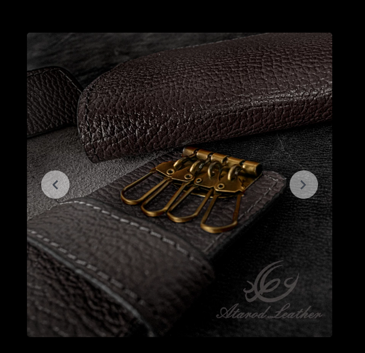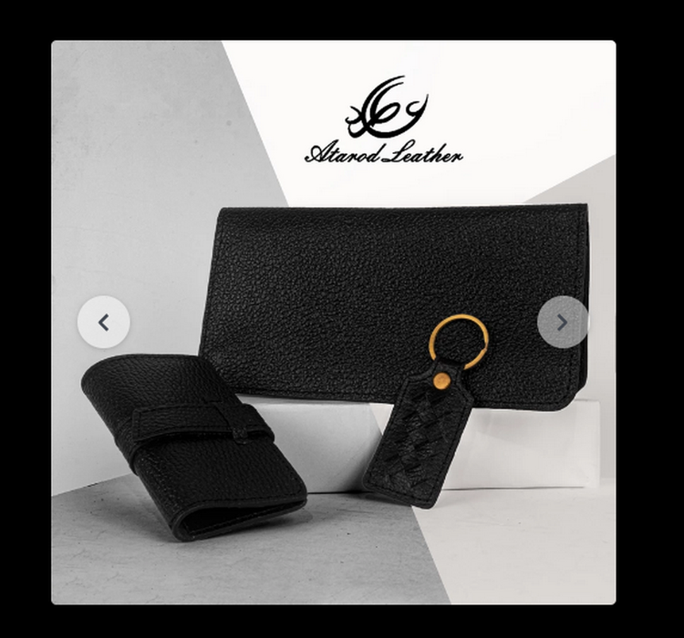 ست هدیه ۳ تکه به همراه بسته بندی چوبی برند ثبت شده چرم عطارد شامل یک عدد کیف پول ، یک عدد جاکلیدی آویز دار و یک عدد جاکلیدی دستی تمام چرم طبیعی گاوی برند ثبت شده چرم عطارد