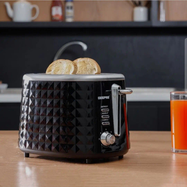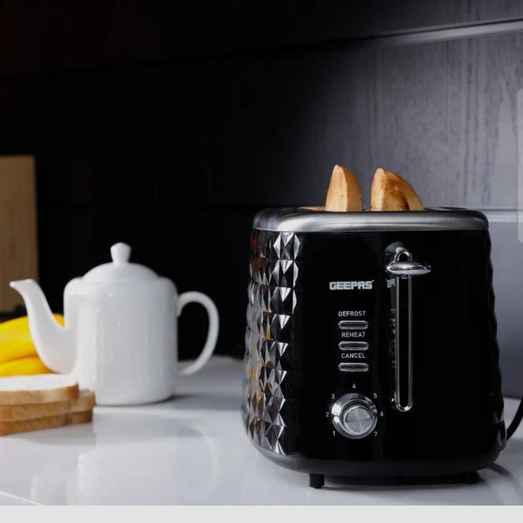 توستر نان 2 تکه Geepas 850W - توستر پاپ آپ 2 برش قابل تنظیم 7 برش قهوه ای با سینی جمع آوری خرده نان قابل جابجایی، خود مرکزی | لغو، یخ زدایی و گرم کردن مجدد | ساندویچ عالی، نان تست و بیشتر