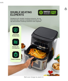 عناصر گرمایشی دوتایی: این سرخ کن هوا مجهز به المنت های گرمایشی دوگانه، عملکرد پخت عالی را ارائه می دهد. عناصر حرارتی بالا و پایین برای اطمینان از توزیع یکنواخت گرما، کاهش زمان پخت و ارائه غذاهای کاملاً پخته با هم کار می کنند.