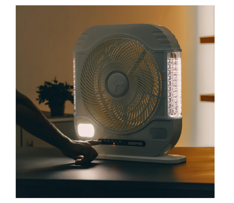 دارای 30 قطعه SMD سمت چپ، 30 قطعه SMD سمت راست و 24 قطعه چراغ SMD در پنل برای روشنایی در شب، زمانی که در تابستان در حال کمپینگ هستید یا برای هر مواقع اضطراری. ساختار قوی و مستحکم یک پایه ضد لغزش در هنگام کار با سرعت قابل توجه ایجاد می کند. این پنکه دارای تیغههای سفید ظریف و بدنه کاملاً ضد زنگ است که از مواد درجه یک ساخته شده است که در برابر خوردگی مقاوم است. فن قابل شارژ قدرتمند عملکردی با سرعت بالا ارائه می دهد و عملکرد خنک کننده شگفت انگیز را تضمین می کند. گریل ها حداکثر ایمنی عملیاتی را تضمین می کنند و از قرار گرفتن انگشتان بین تیغه ها جلوگیری می کنند. نگهداری از فن نیز آسان است و با یک دستمال مرطوب تمیز می شود
