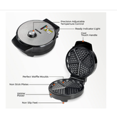 ✅ نشانگر روشنایی نیرو و آماده، کنترل ترموستاتیک: نشانگر نور مناسب زمانی را نشان میدهد که دستگاه وافل به دمای ایدهآل برای شروع پخت و پز دستهای از وافلهای آمریکایی/بلژیکی آمریکایی/بلژیکی با کیفیت رستورانی و آمریکایی رسیده است.
