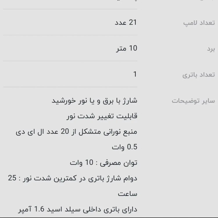 شارژی با برق و نور آفتاب ۲۵ ساعت نوردهی ۸ ساعت شارژ کامل کاربردی با نور مناسب برای سفر ، خودرو و داخل منزل ضروريست دارای رتبه برتر طبق نظر کاربران