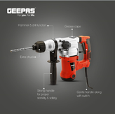 چکش چرخشی Geepas 26 میلیمتری، دارای یک موتور قدرتمند است. این موتور امکان انجام فعالیتهای زیادی از حفاری تا سوراخ کاری و پیچکاری را فراهم میکند. چاک بدون کلید امکان تغییر سریع و آسان بیت را در صورت لزوم می دهد.