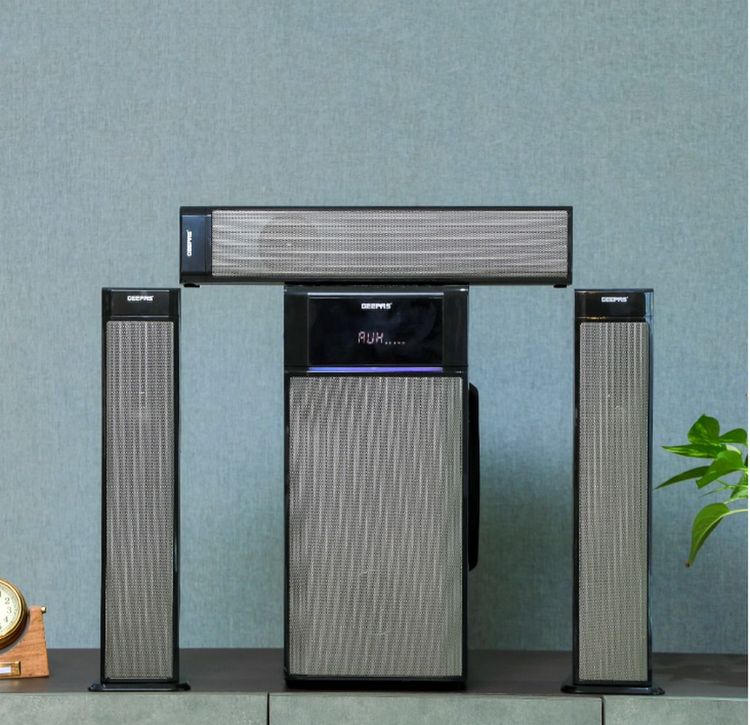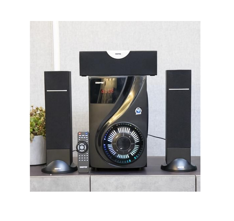 آهنگ مورد علاقه خود را از لیست پخش خود در هر جایی که می خواهید پخش کنید. سیستم بلندگوی چند رسانه ای Geepas 3.1 CH به گونه ای طراحی شده است که از نظر بصری جذاب و همچنین کاربردی باشد. این اسپیکرها وقتی نوبت به ارائه چشمگیرترین اجراها میرسد، برتر هستند. همه کاره است و دارای گزینه های چند اتصالی مانند پخش جریانی از طریق بلوتوث و همچنین سایر دستگاه های ورودی مانند USB، MP3، EQ و رادیو FM است. ویژگی اتصال بلوتوث به شما این امکان را می دهد که به هر دستگاهی در نزدیکی خود متصل شوید و لیست پخش مورد علاقه خود را فورا پخش کنید. سیستم بلندگو دارای یک PMPO 40000 واتی است که یک تجربه صوتی واضح و قدرتمند را ارائه می دهد