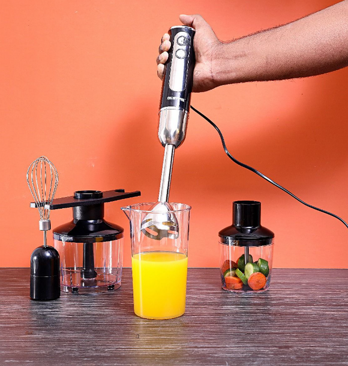 ایمنی و تمیز کردن آسان: همراه با ضمائم بدون BPA و قابل شستشو در ماشین ظرفشویی: کاسه خردکن غذا 860 میلی لیتری، چوب مخلوط کن استنلس استیل، همزن تخم مرغ از جنس استنلس استیل، و یک بشر 600 میلی لیتری با درب و یک آسیاب قهوه 450 میلی لیتری.
