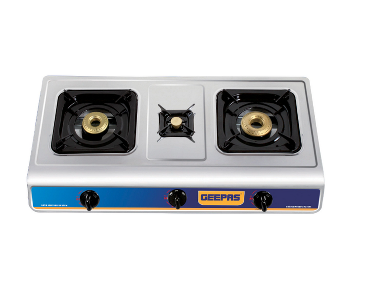 اجاق گاز سه شعله Geepas - طراحی جذاب، اجاق گاز اجاق گاز 3 شعله، جرقه زنی خودکار، گریل در فضای باز، اجاق های کمپینگ| بدنه استیل ضد زنگ