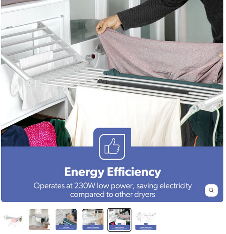 راه حل خشک کردن کارآمد انرژی: این خشک کن لباس گرم شده با مصرف انرژی کم فقط 230 وات، برای کاهش مصرف انرژی بدون به خطر انداختن عملکرد خشک کردن طراحی شده است. این یک جایگزین سازگار با محیط زیست برای خشک کن های تشنه انرژی است که به شما کمک می کند قبض های برق خود را کاهش دهید و در عین حال اثرات زیست محیطی خود را به حداقل برسانید.