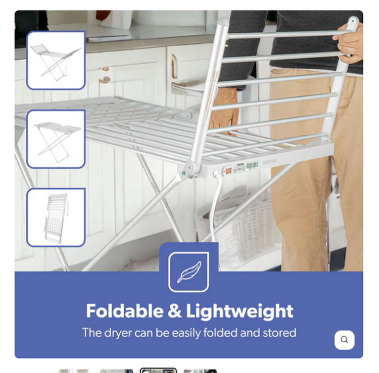 حداکثر ظرفیت بار 10 کیلوگرمی: علیرغم اندازه جمع و جور آن، این خشک کن برقی می تواند تا 10 کیلوگرم لباس را تحمل کند، که آن را به گزینه ای عالی برای خشک کردن بارهای بزرگ به طور موثر تبدیل می کند. چه لباس باشد، چه برج، چه ملافه، این خشک کن تضمین می کند که همه چیز به طور کامل خشک می شود بدون اینکه عملکرد آن به خطر بیفتد.