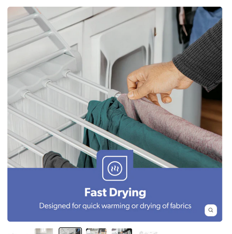 18 لوله گرم برای خشک کردن سریع: خشک کن دارای 18 لوله گرم می باشد که هر کدام برای اطمینان از خشک شدن یکنواخت و کارآمد طراحی شده اند. این میله های گرم شده فرآیند خشک شدن را سرعت می بخشند، برای استفاده در مواقعی که فضا محدود است یا شرایط آب و هوایی مانع از خشک شدن در فضای باز می شود. با لباس های مرطوبی که روزها در اطراف آویزان هستند خداحافظی کنید و در کمترین زمان از لباس های تازه خشک شده لذت ببرید.