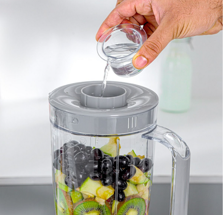 2) ظرفیت شیشه پلاستیکی 1.5 لیتری - با یک شیشه به این بزرگی می توانید مقادیر زیادی میوه، سبزیجات، قهوه و ادویه جات ترشی جات را با هم مخلوط کنید. این کار به صرفه جویی در زمان در بریدن میوه ها یا سبزیجات کمک می کند و فوراً یک لیوان آب میوه خوشمزه و سالم در عرض چند ثانیه دریافت می کنید و به شما امکان می دهد بخش های بزرگتری از سوپ ها یا اسموتی ها را به یکباره درست کنید که برای پخت و پز دسته ای یا سرو یک خانواده عالی است.