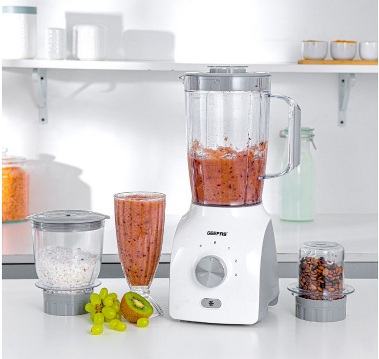 مخلوطکنهای چندکاره Geepas 3 در 1 میتوانند قهوه، ادویهها، آجیل، پیاز را خرد کرده و میلک شیک دانه سویا، اسموتیها، سبزیجات، میلک شیکهای تازه را مخلوط، آسیاب کنند و اینها آخرین ویژگیهای آن از فهرست کامل نیستند. در عرض چند ثانیه میتوانید نوشیدنیها و اسموتیهای خنک، صاف و با طعمی عالی که حاوی تمام مواد مغذی و ویتامینهای میوهها و سبزیجات مورد علاقهتان هستند بسازید. به سادگی میوه ها و سبزیجات را قرار دهید و درب آن را ببندید و سپس دکمه را فشار دهید تا نوشیدنی شما مخلوط شود. موتور قدرتمند 400 وات و تیغه های فولادی ضد زنگ با طراحی خاص، ایجاد پالس و الگوهای ترکیبی.