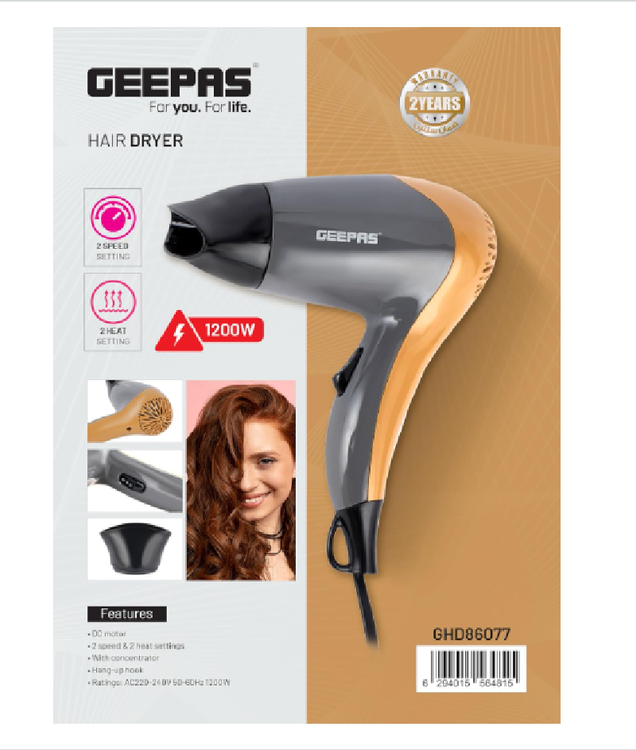 سشوار Geepas GHD86077 - 2-Speed & 2 Temperature Settings 1200W | عملکرد Cool Shot For Frizz Free Shine کلاه جداشدنی