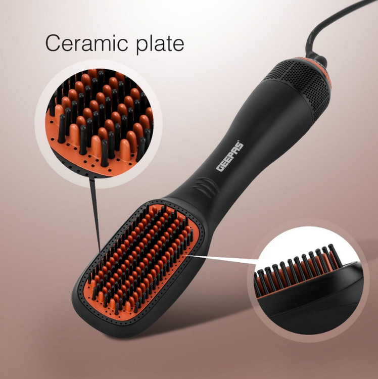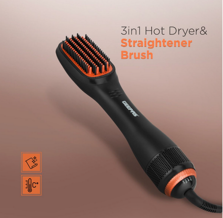 برس خشک کن و صاف کننده داغ Geepas 3-in-1- GH86062| 2 سرعت تنظیم حرارت و عملکرد خنک کننده با شانه داخلی| گرم کردن سریع، مناسب برای آرایش سالن و منزل| مشکی و نارنجی